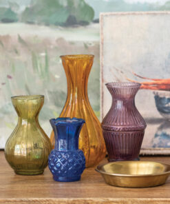 Set de 4 mini floreros de vidrio en reborde, multicolor