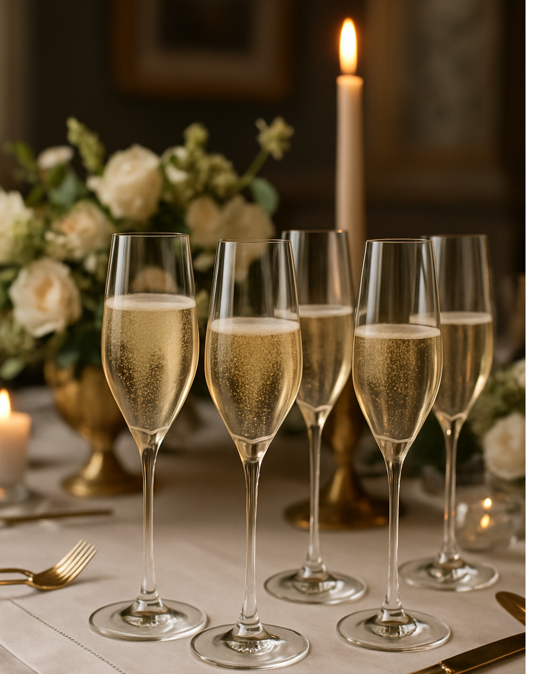 🍷 Incluye 6 copas de agua, 6 de vino y 6 de champaña