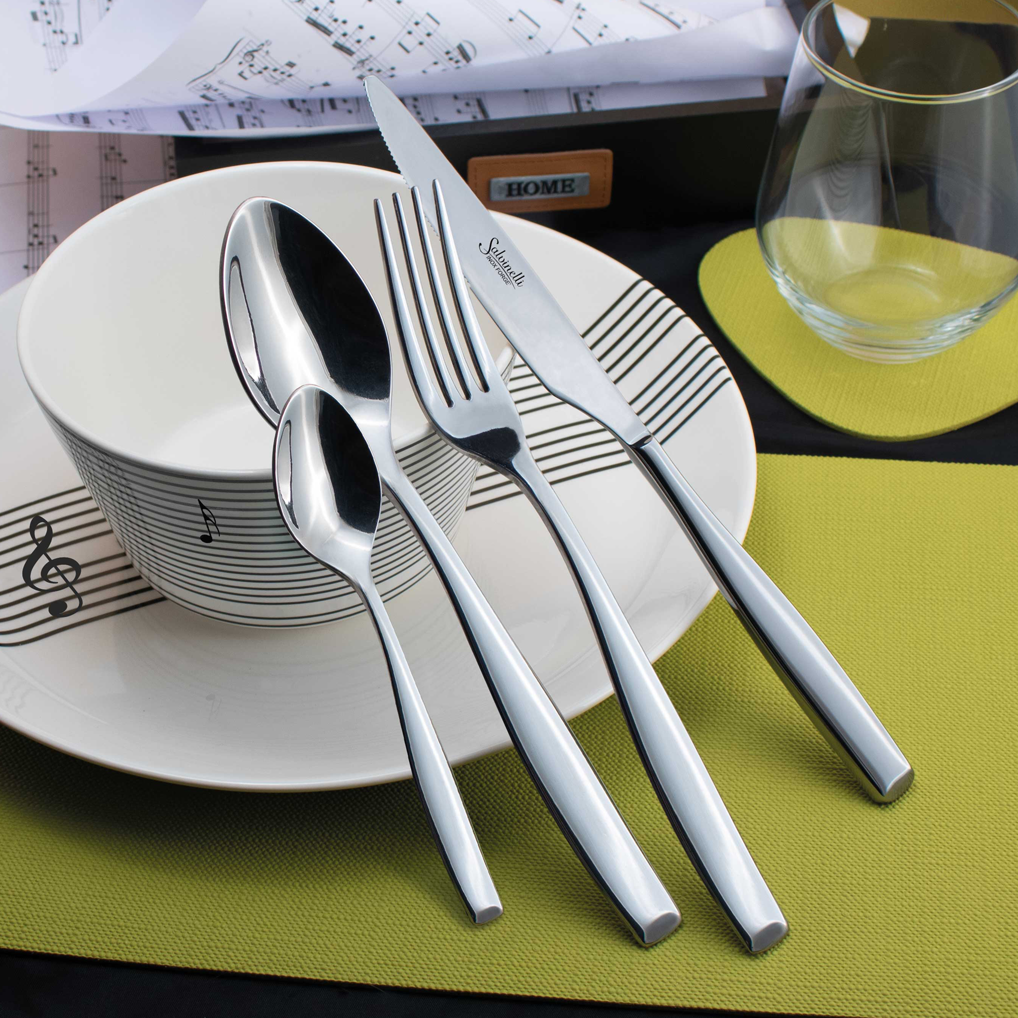 Cubiertos en acero inoxidable 18-C NICKEL FREE. Acabado brillante. Espesor 4 mm.